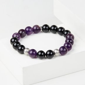 Браслет микс аметист, турмалин (сталь хир.) 10 мм 17 см