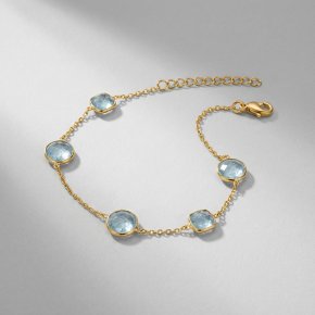 Браслет аквамарин Бразилия (латунь позолота) огранка 8 мм 16 см (+2 см)