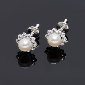 Серьги жемчуг белый Гонконг (серебро 925 пр. родир. бел.) пуссеты