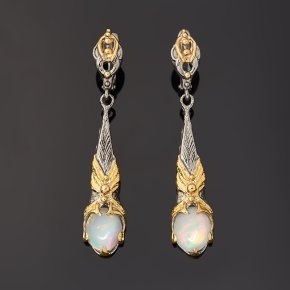 Серьги опал благородный белый Эфиопия (серебро 925 пр. позолота, родир. сер.)
