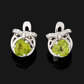 Серьги хризолит США огранка (серебро 925 пр. родир. бел.)
