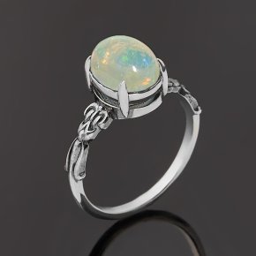 Кольцо опал благородный белый Эфиопия (серебро 925 пр. оксидир.) размер 17,5