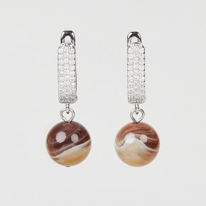 Серьги агат коричневый Ботсвана (биж. сплав)