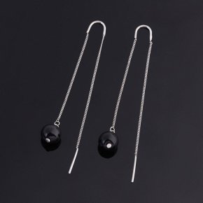 Серьги агат черный Бразилия (серебро 925 пр. родир. бел.) протяжки