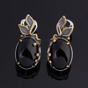 Серьги агат черный Бразилия (серебро 925 пр. оксидир., позолота)